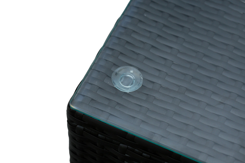 Topped with tempered glass, the table adds a touch of sophistication to the set while offering a convenient surface for drinks, snacks, or decor. Its tempered nature ensures safety and durability, providing peace of mind for worry-free enjoyment.